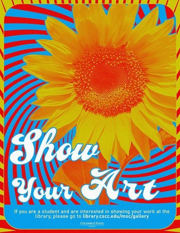 As part of the reopening of Columbus State’s Library, library staff looked to reopen the library’s student art gallery space. My team was given the role of preparing a proposal for the library’s board of directors. My role was to create flyers to advertise the newly opened space and to generate interest from students.